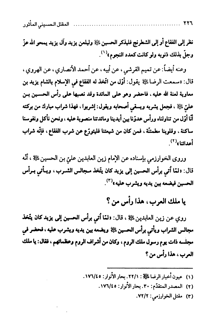 المقتل الحسيني المأثور، عرض روائي لأحداث كربلاء على لسان المعصومين