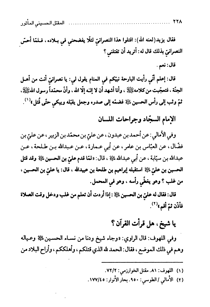 المقتل الحسيني المأثور، عرض روائي لأحداث كربلاء على لسان المعصومين