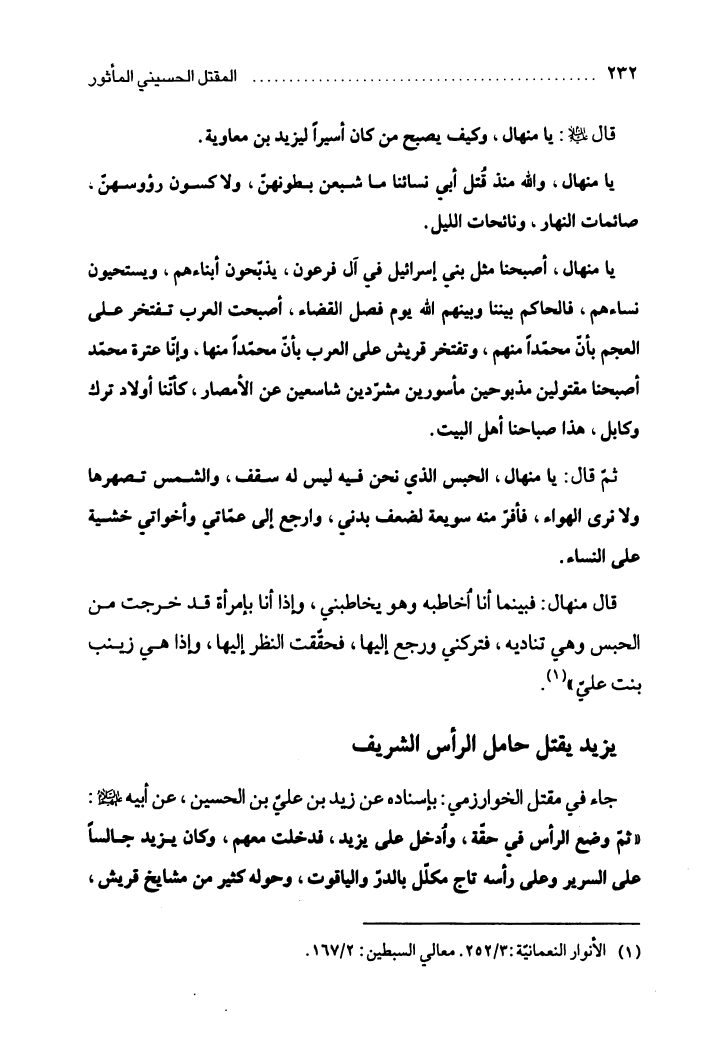 المقتل الحسيني المأثور، عرض روائي لأحداث كربلاء على لسان المعصومين