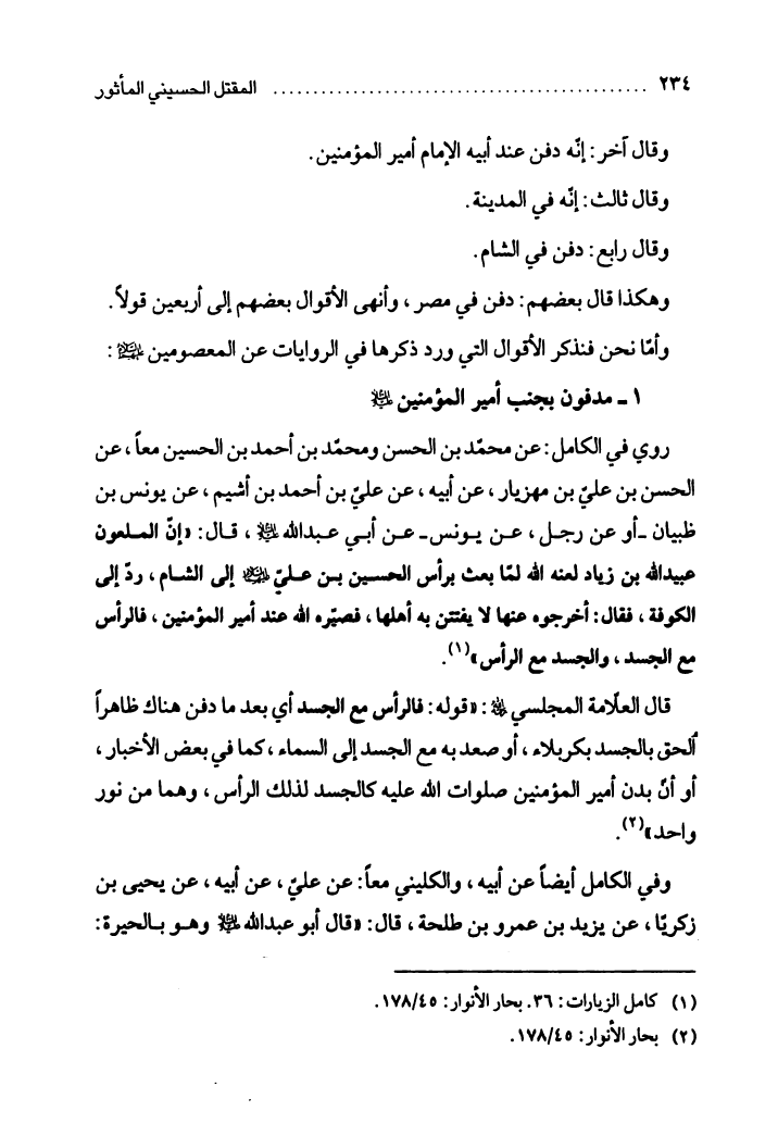 المقتل الحسيني المأثور، عرض روائي لأحداث كربلاء على لسان المعصومين