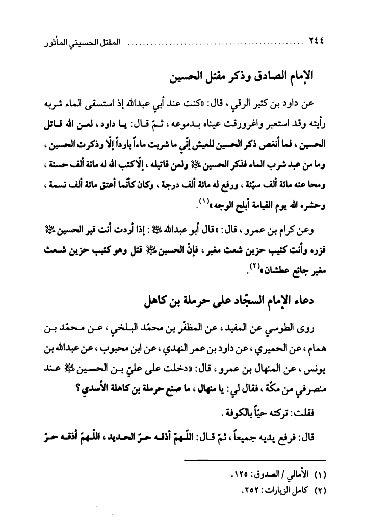 المقتل الحسيني المأثور، عرض روائي لأحداث كربلاء على لسان المعصومين