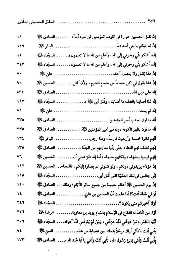 المقتل الحسيني المأثور، عرض روائي لأحداث كربلاء على لسان المعصومين