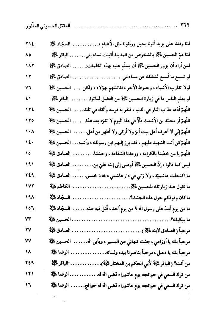 المقتل الحسيني المأثور، عرض روائي لأحداث كربلاء على لسان المعصومين