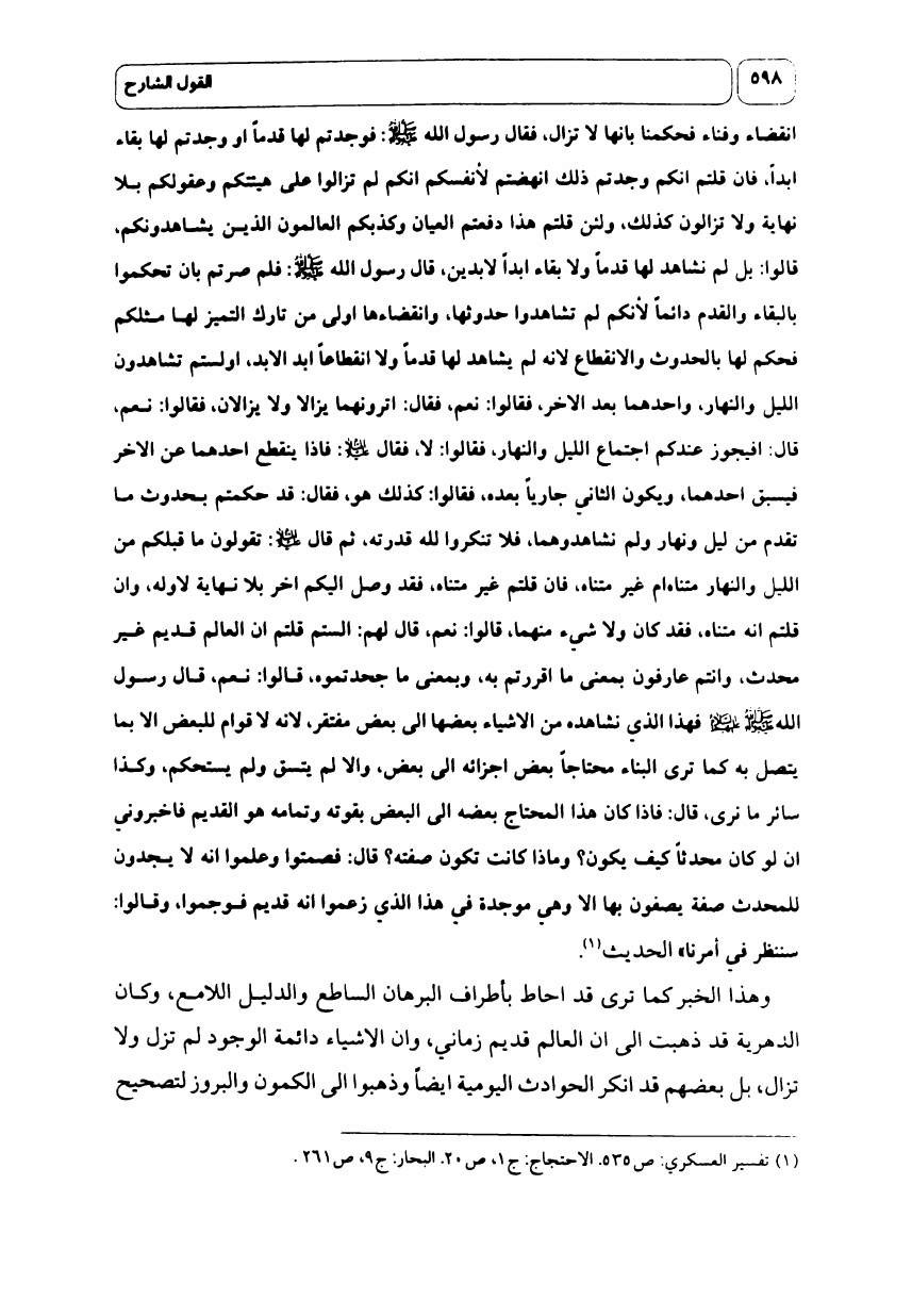 القول الشارح والحجة فيما ورد عمن هو على العباد حجة
