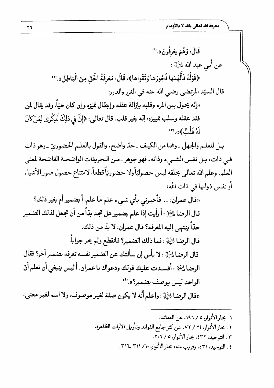 معرفة الله تعالى بالله ، لا بالأوهام الفلسفية والعرفانية