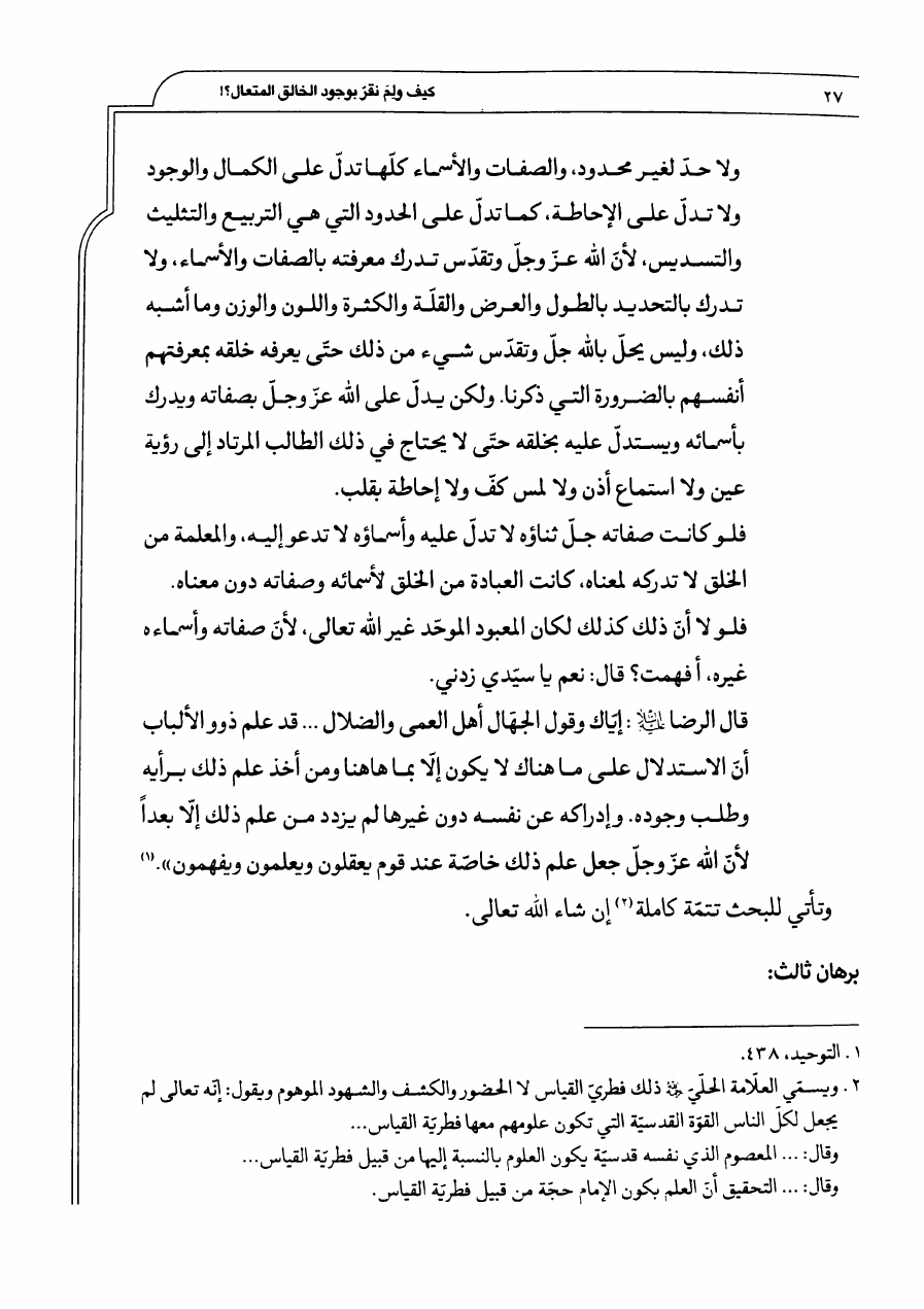 معرفة الله تعالى بالله ، لا بالأوهام الفلسفية والعرفانية