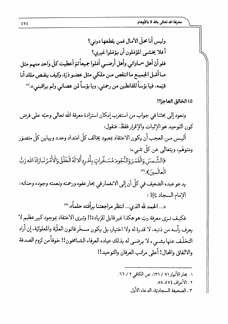 معرفة الله تعالى بالله ، لا بالأوهام الفلسفية والعرفانية