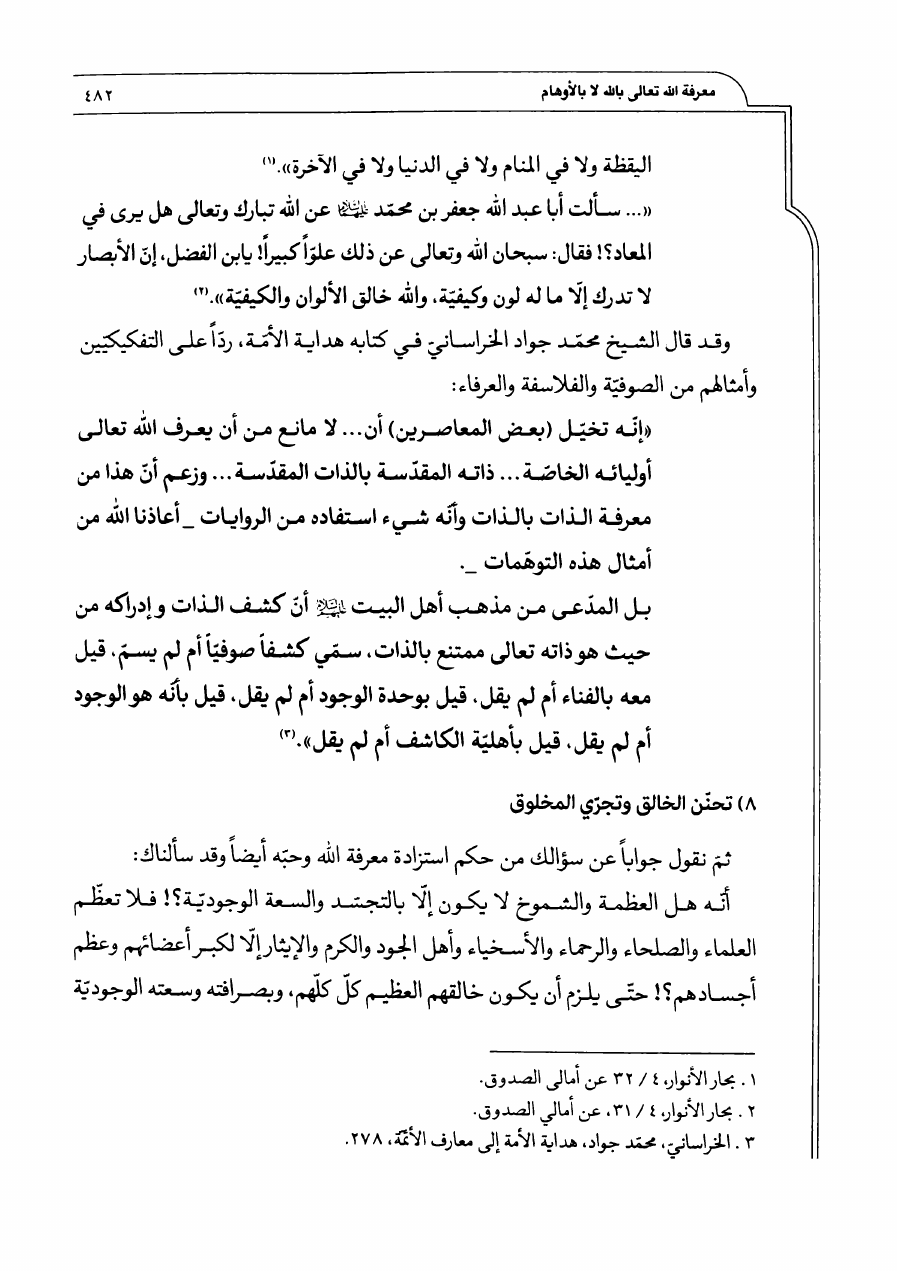 معرفة الله تعالى بالله ، لا بالأوهام الفلسفية والعرفانية