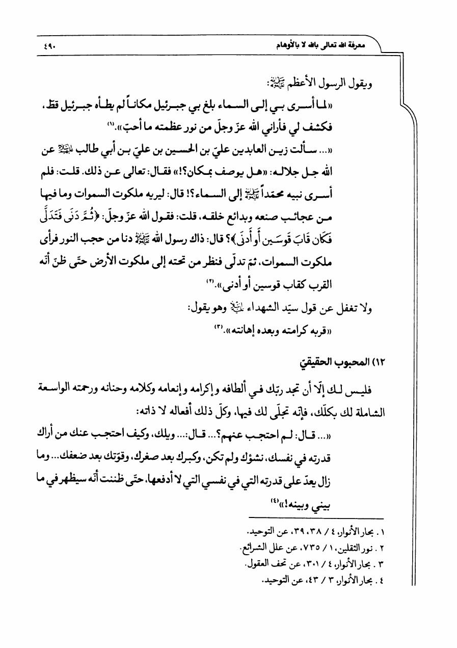 معرفة الله تعالى بالله ، لا بالأوهام الفلسفية والعرفانية