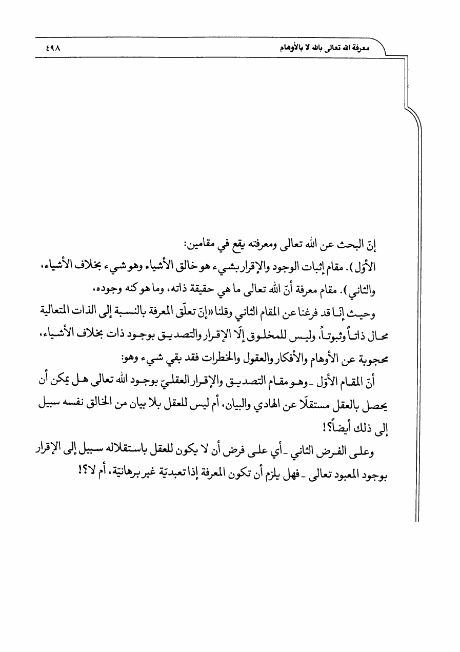 معرفة الله تعالى بالله ، لا بالأوهام الفلسفية والعرفانية