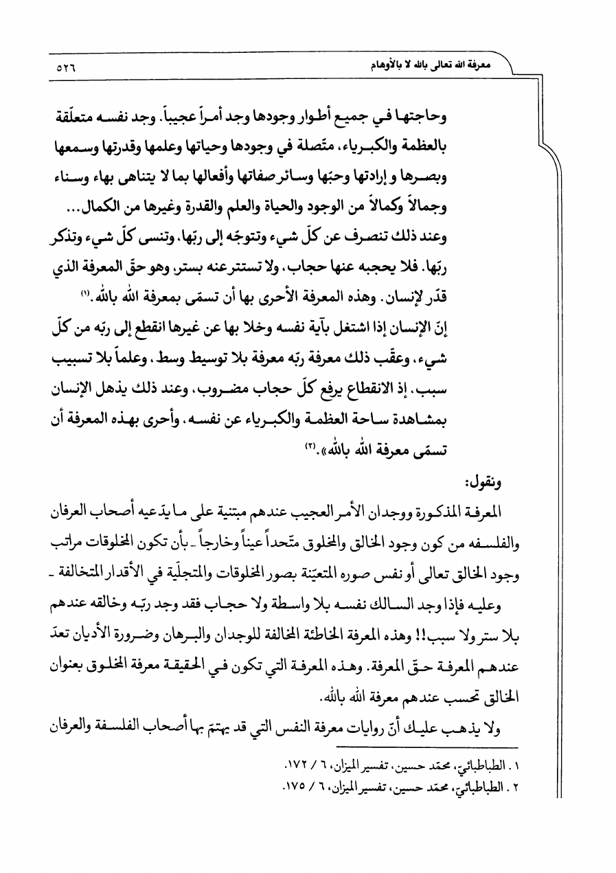 معرفة الله تعالى بالله ، لا بالأوهام الفلسفية والعرفانية
