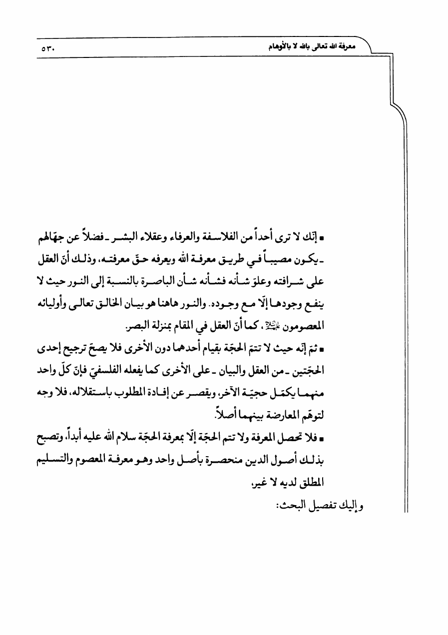 معرفة الله تعالى بالله ، لا بالأوهام الفلسفية والعرفانية