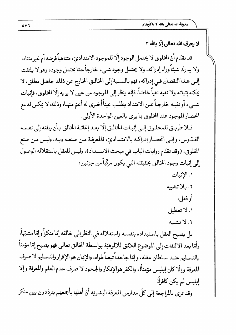 معرفة الله تعالى بالله ، لا بالأوهام الفلسفية والعرفانية