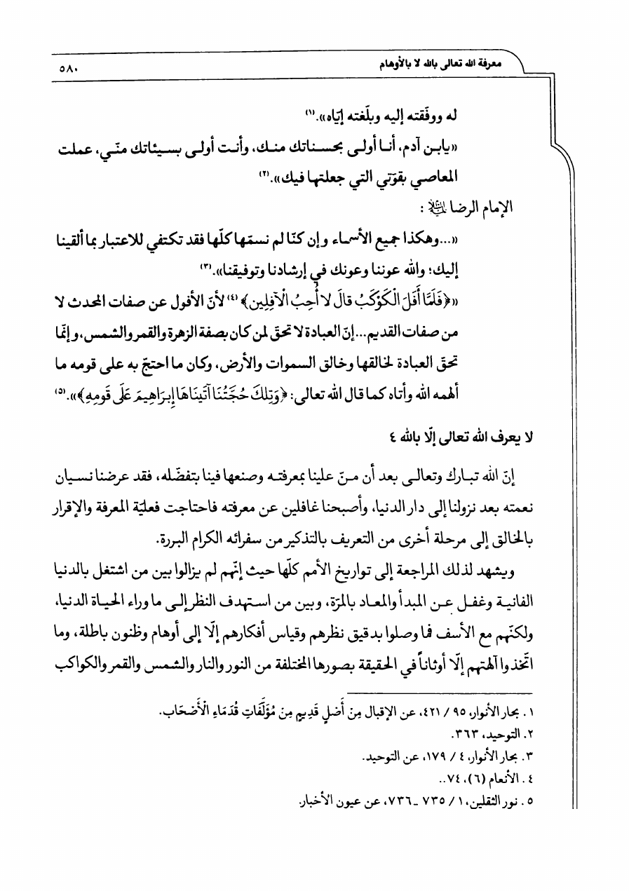 معرفة الله تعالى بالله ، لا بالأوهام الفلسفية والعرفانية