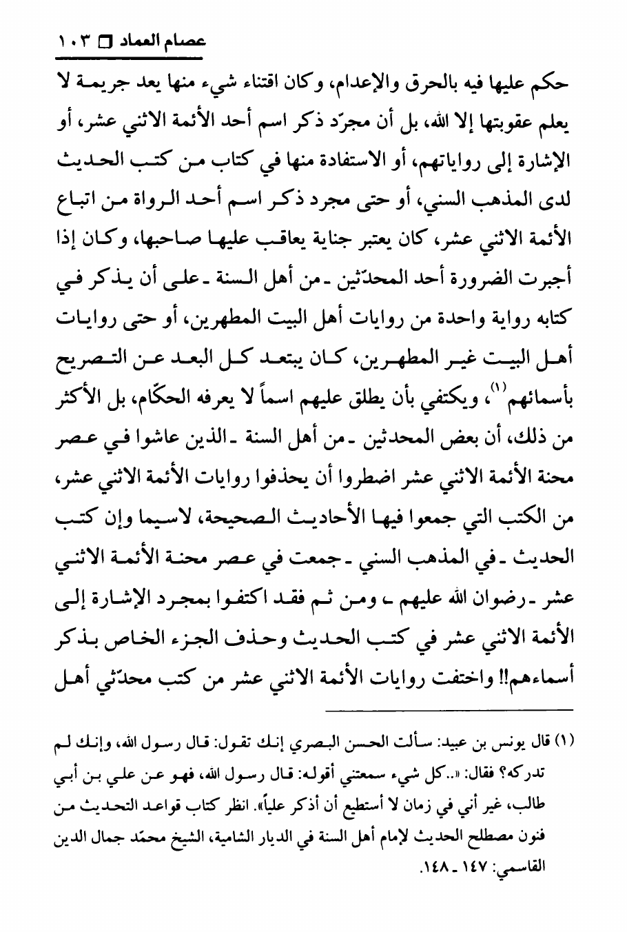 نام کتاب : تجربتي مع الامام محمد بن الحسن العسكري ، المنهج الصحيح في عرض حقيقة غيبة الإمام المهدي على الوهابيين نویسنده : الدكتور عصام العماد جلد : 1 صفحه : 103