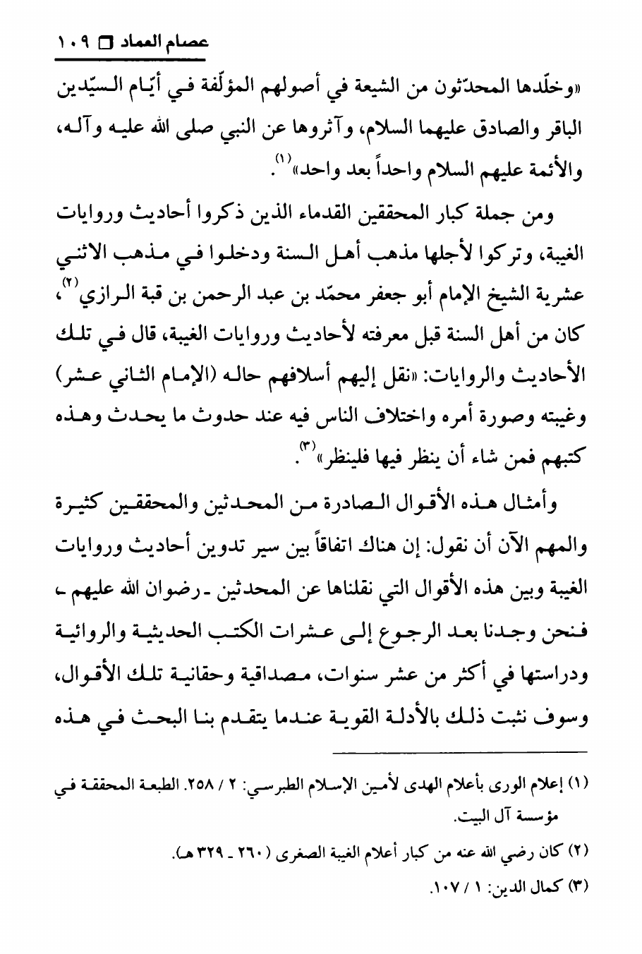 نام کتاب : تجربتي مع الامام محمد بن الحسن العسكري ، المنهج الصحيح في عرض حقيقة غيبة الإمام المهدي على الوهابيين نویسنده : الدكتور عصام العماد جلد : 1 صفحه : 109