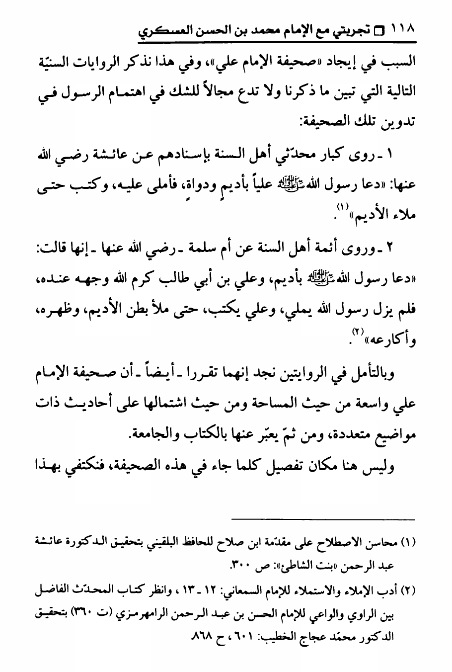نام کتاب : تجربتي مع الامام محمد بن الحسن العسكري ، المنهج الصحيح في عرض حقيقة غيبة الإمام المهدي على الوهابيين نویسنده : الدكتور عصام العماد جلد : 1 صفحه : 118