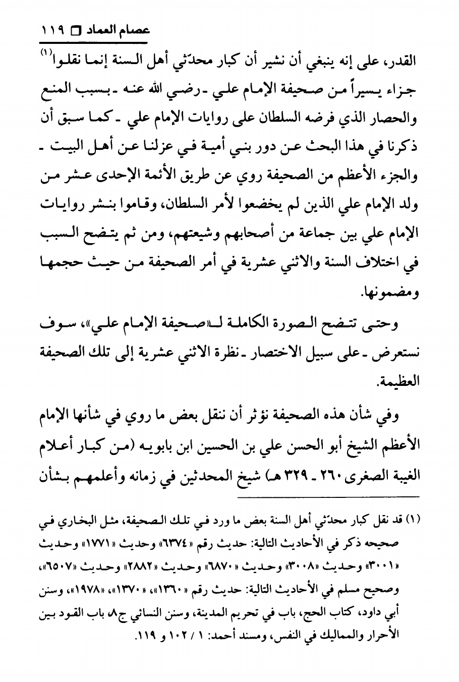 نام کتاب : تجربتي مع الامام محمد بن الحسن العسكري ، المنهج الصحيح في عرض حقيقة غيبة الإمام المهدي على الوهابيين نویسنده : الدكتور عصام العماد جلد : 1 صفحه : 119