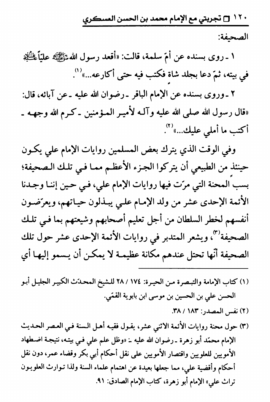 نام کتاب : تجربتي مع الامام محمد بن الحسن العسكري ، المنهج الصحيح في عرض حقيقة غيبة الإمام المهدي على الوهابيين نویسنده : الدكتور عصام العماد جلد : 1 صفحه : 120