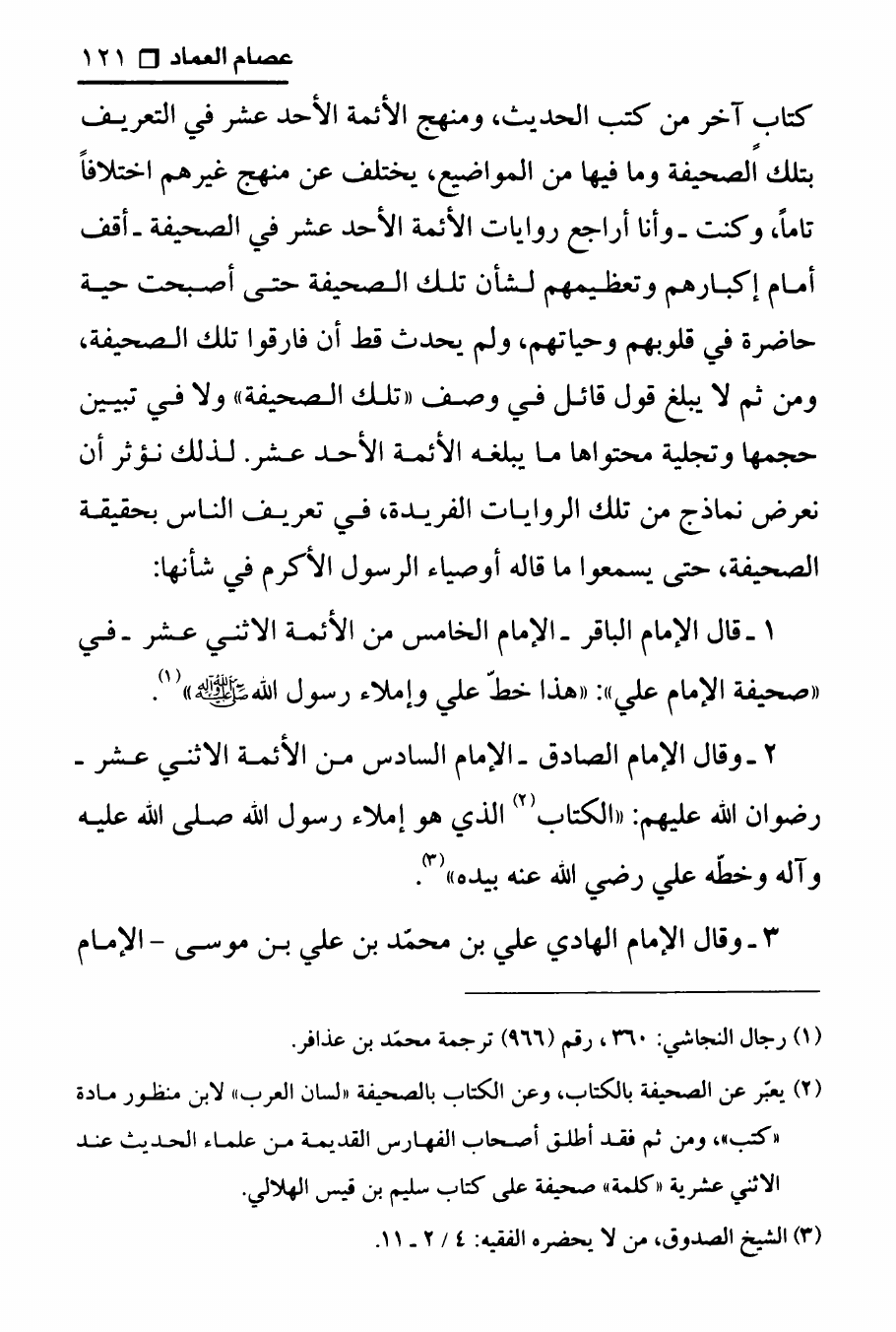 نام کتاب : تجربتي مع الامام محمد بن الحسن العسكري ، المنهج الصحيح في عرض حقيقة غيبة الإمام المهدي على الوهابيين نویسنده : الدكتور عصام العماد جلد : 1 صفحه : 121