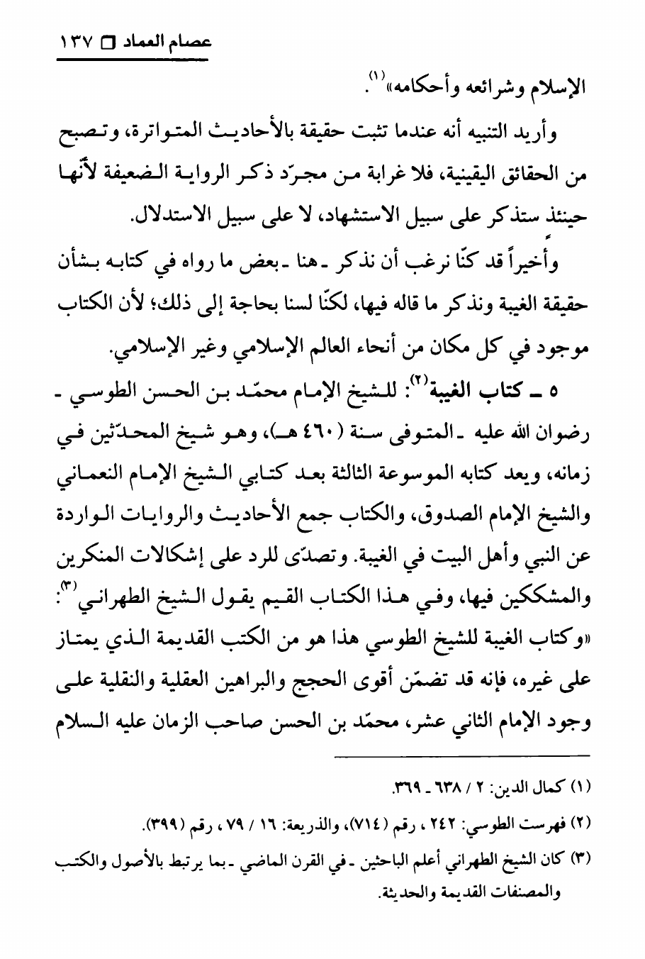 نام کتاب : تجربتي مع الامام محمد بن الحسن العسكري ، المنهج الصحيح في عرض حقيقة غيبة الإمام المهدي على الوهابيين نویسنده : الدكتور عصام العماد جلد : 1 صفحه : 137