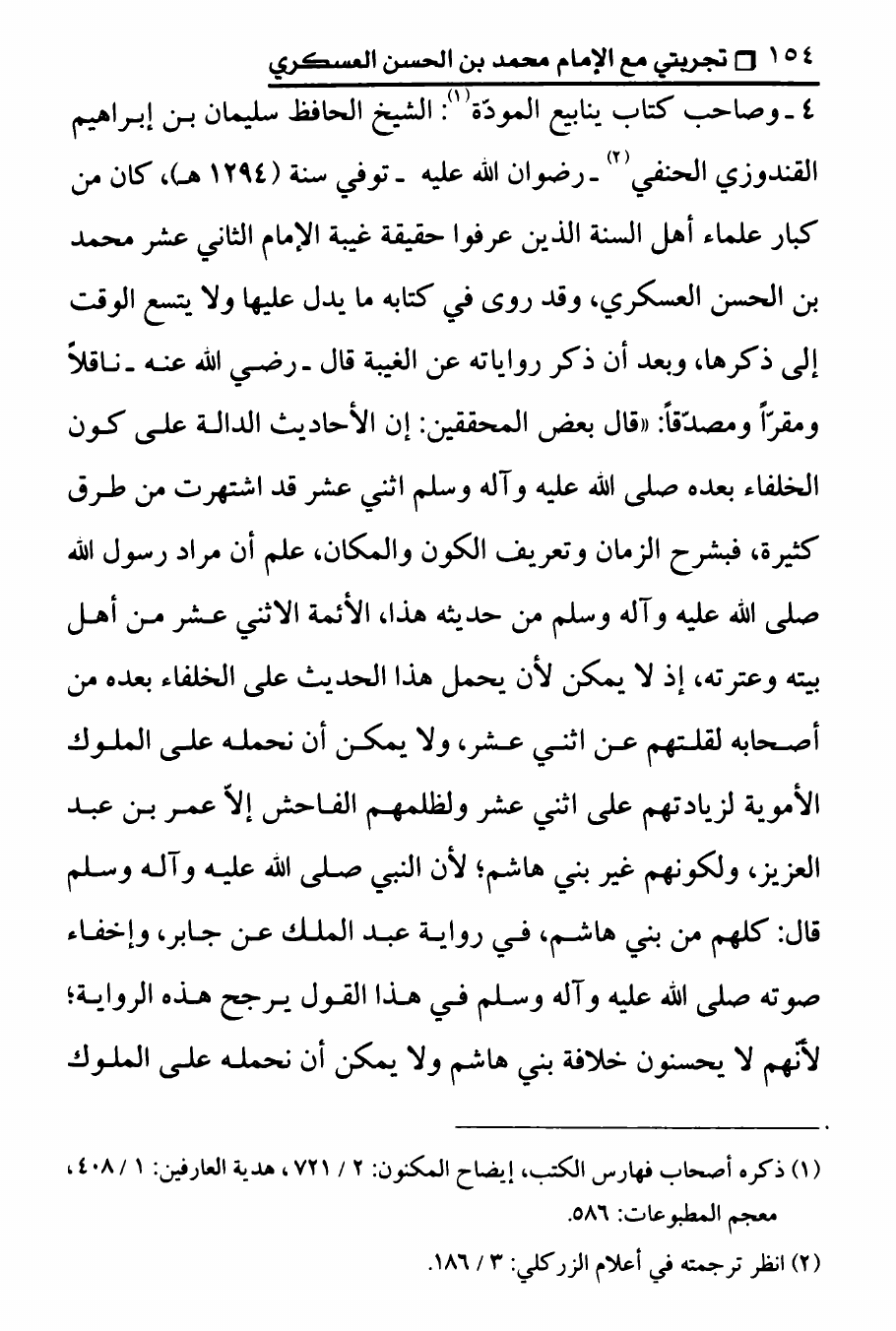 نام کتاب : تجربتي مع الامام محمد بن الحسن العسكري ، المنهج الصحيح في عرض حقيقة غيبة الإمام المهدي على الوهابيين نویسنده : الدكتور عصام العماد جلد : 1 صفحه : 154