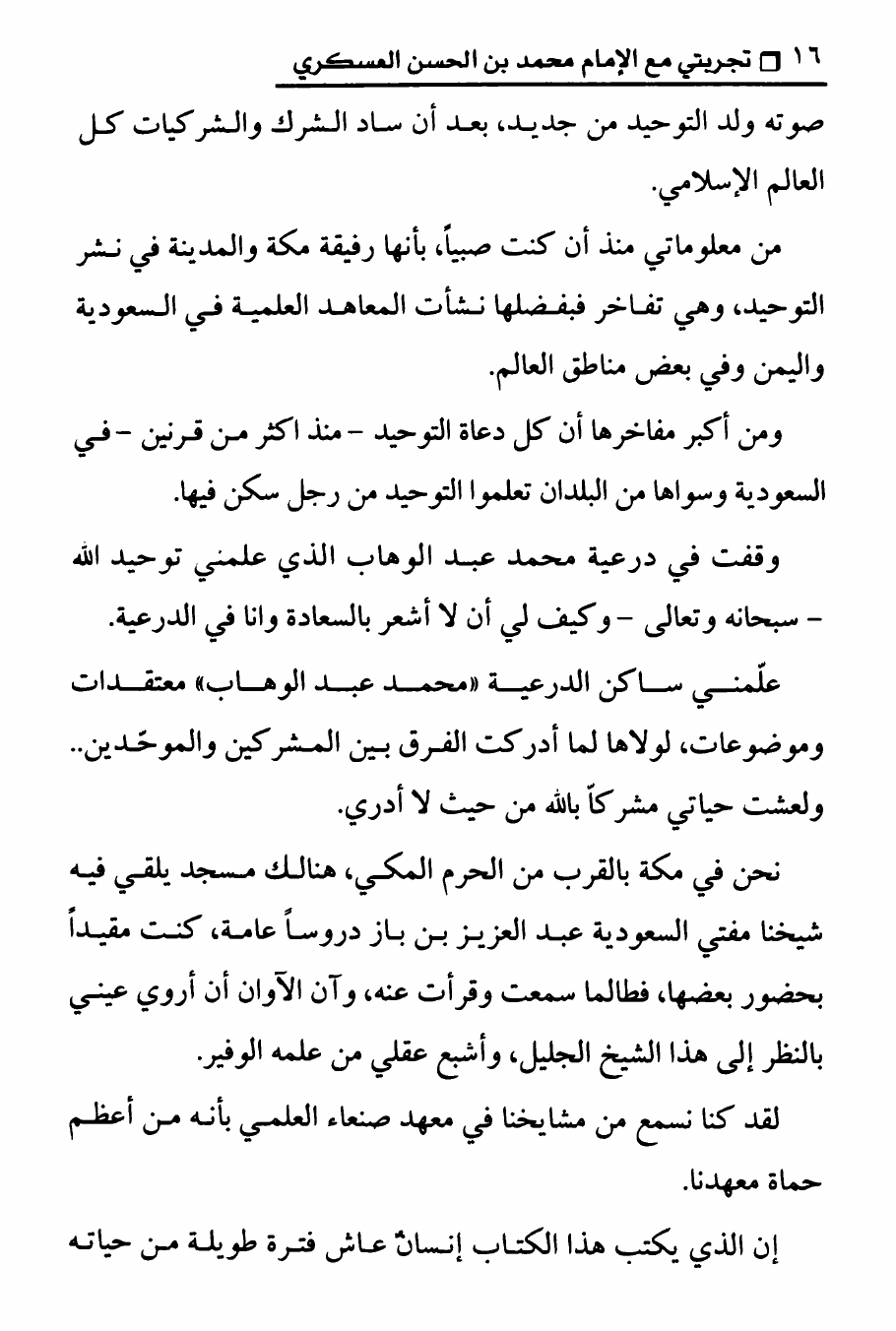 نام کتاب : تجربتي مع الامام محمد بن الحسن العسكري ، المنهج الصحيح في عرض حقيقة غيبة الإمام المهدي على الوهابيين نویسنده : الدكتور عصام العماد جلد : 1 صفحه : 16