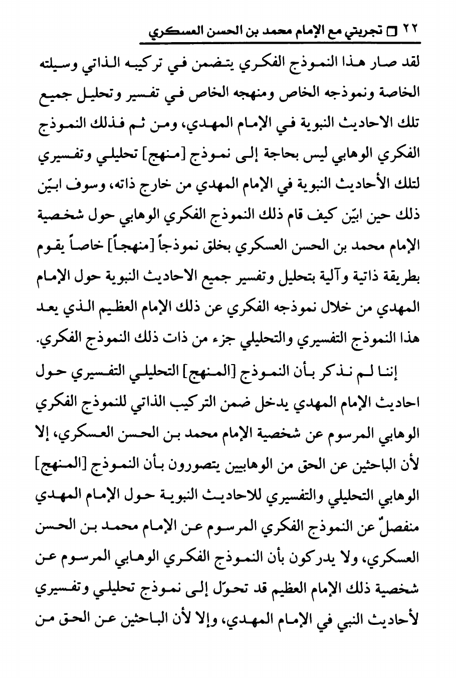 نام کتاب : تجربتي مع الامام محمد بن الحسن العسكري ، المنهج الصحيح في عرض حقيقة غيبة الإمام المهدي على الوهابيين نویسنده : الدكتور عصام العماد جلد : 1 صفحه : 22