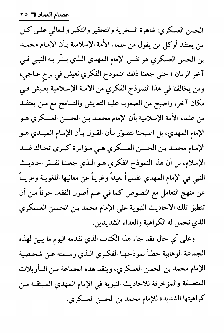 نام کتاب : تجربتي مع الامام محمد بن الحسن العسكري ، المنهج الصحيح في عرض حقيقة غيبة الإمام المهدي على الوهابيين نویسنده : الدكتور عصام العماد جلد : 1 صفحه : 25