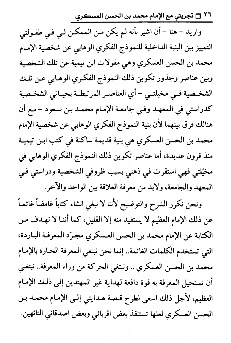 نام کتاب : تجربتي مع الامام محمد بن الحسن العسكري ، المنهج الصحيح في عرض حقيقة غيبة الإمام المهدي على الوهابيين نویسنده : الدكتور عصام العماد جلد : 1 صفحه : 26