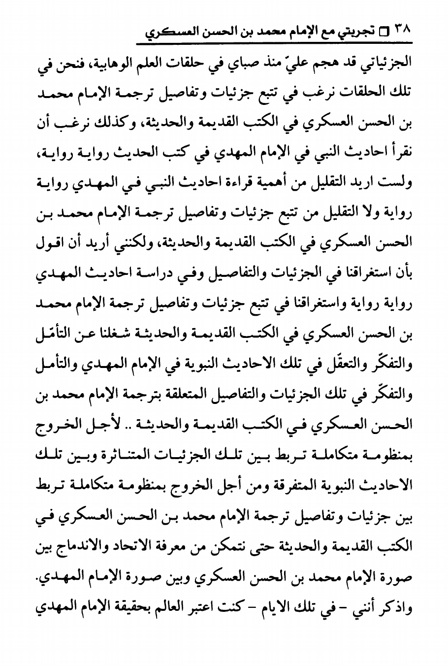 نام کتاب : تجربتي مع الامام محمد بن الحسن العسكري ، المنهج الصحيح في عرض حقيقة غيبة الإمام المهدي على الوهابيين نویسنده : الدكتور عصام العماد جلد : 1 صفحه : 38