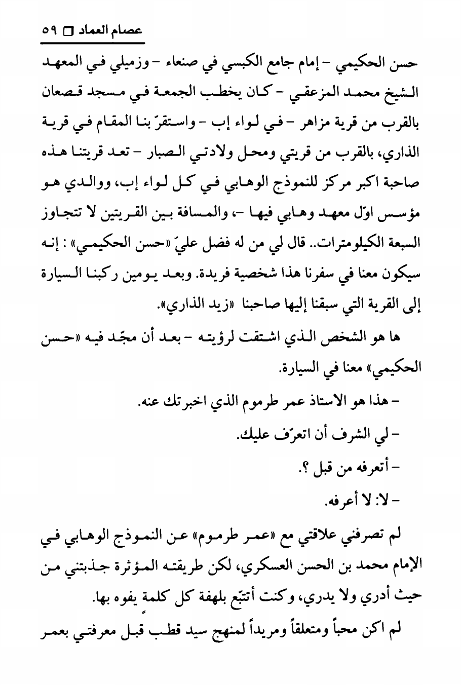 نام کتاب : تجربتي مع الامام محمد بن الحسن العسكري ، المنهج الصحيح في عرض حقيقة غيبة الإمام المهدي على الوهابيين نویسنده : الدكتور عصام العماد جلد : 1 صفحه : 59