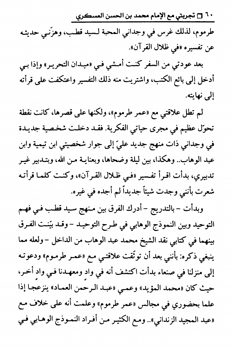 نام کتاب : تجربتي مع الامام محمد بن الحسن العسكري ، المنهج الصحيح في عرض حقيقة غيبة الإمام المهدي على الوهابيين نویسنده : الدكتور عصام العماد جلد : 1 صفحه : 60