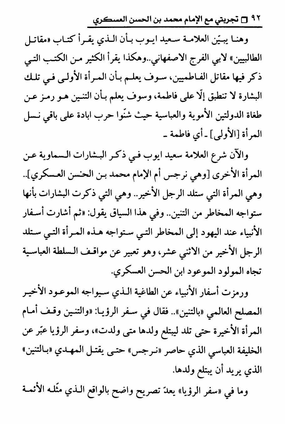 نام کتاب : تجربتي مع الامام محمد بن الحسن العسكري ، المنهج الصحيح في عرض حقيقة غيبة الإمام المهدي على الوهابيين نویسنده : الدكتور عصام العماد جلد : 1 صفحه : 92