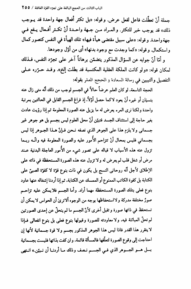 الحجة البالغة، على تجرد النفس الناطقة