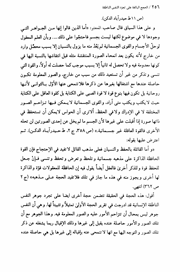الحجة البالغة، على تجرد النفس الناطقة