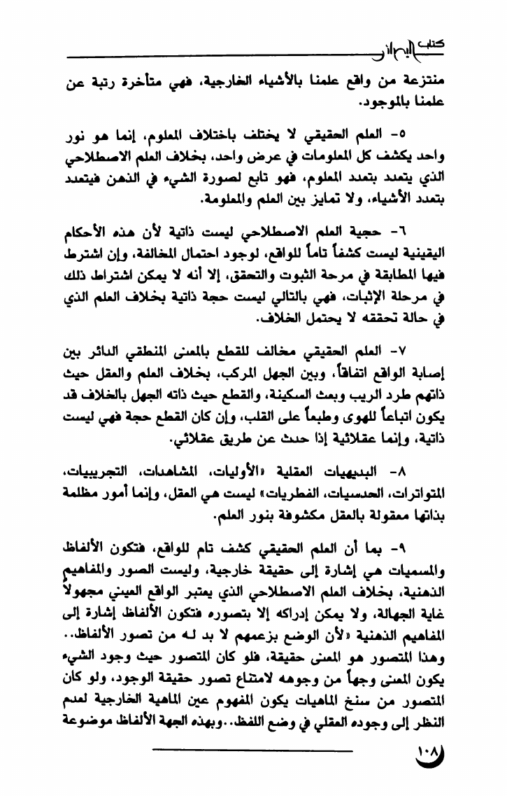 نام کتاب : بصائر في نظرية المعرفة نویسنده : الشيخ معتصم السيد أحمد    جلد : 1  صفحه : 108