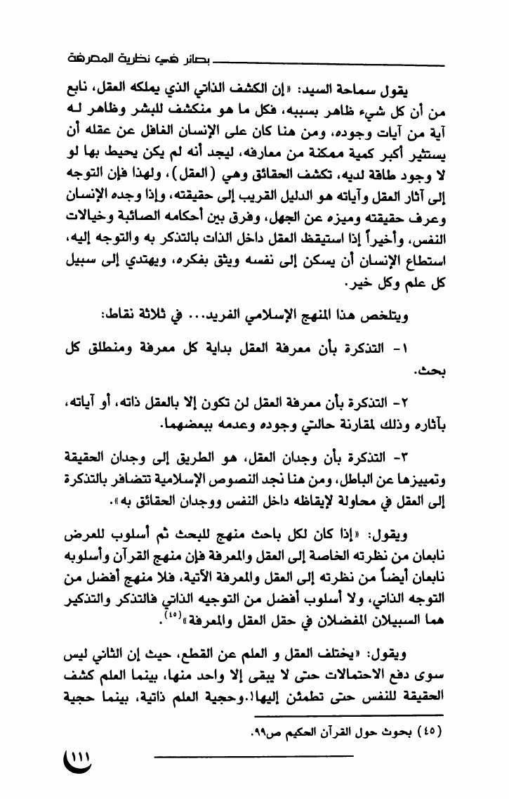 نام کتاب : بصائر في نظرية المعرفة نویسنده : الشيخ معتصم السيد أحمد    جلد : 1  صفحه : 111