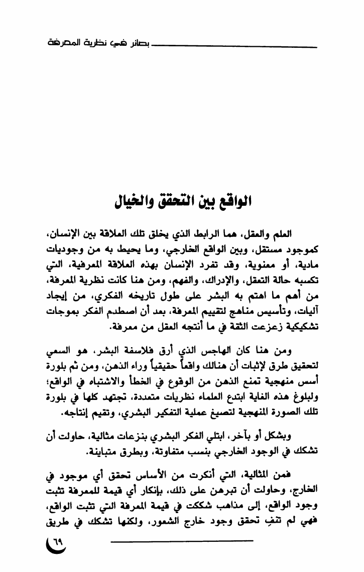 نام کتاب : بصائر في نظرية المعرفة نویسنده : الشيخ معتصم السيد أحمد    جلد : 1  صفحه : 69