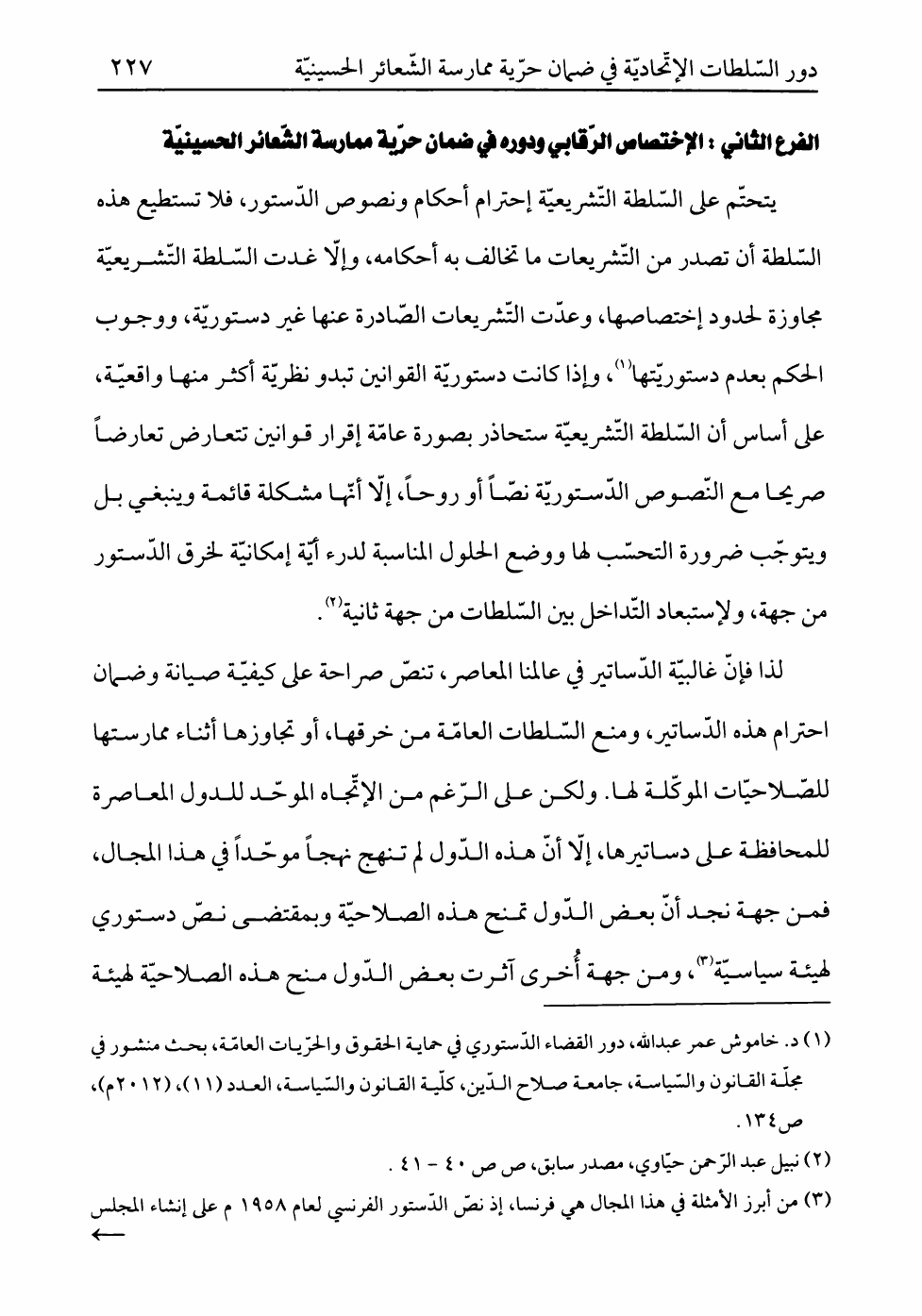 الحماية الدستورية لحرية ممارسة الشعائر الحسينية في العراق