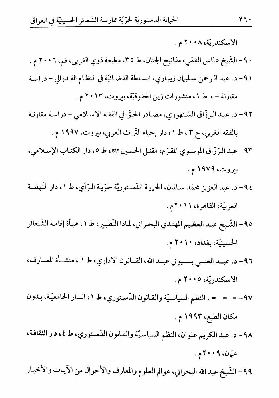 الحماية الدستورية لحرية ممارسة الشعائر الحسينية في العراق