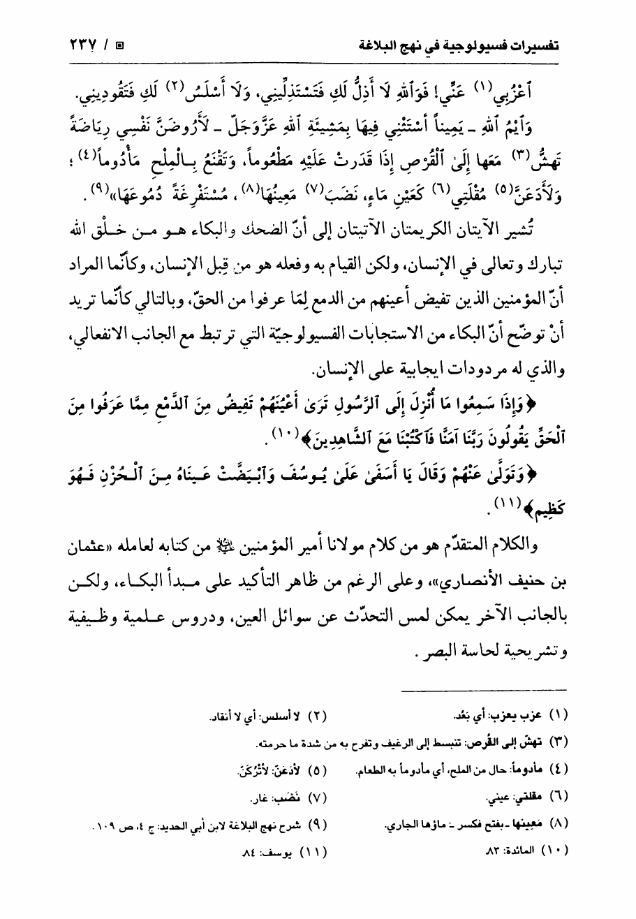تفسيرات فسيولوجية في نهج البلاغة