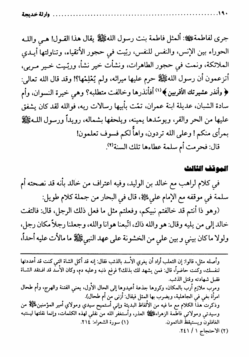 وارثة خديجة، أم سلمة أم المؤمنين، حياتها، مواقفها، أحاديثها