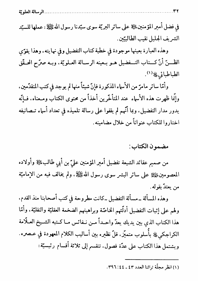 نام کتاب : الرسالة العلوية، في فضل أمير المؤمنين على سائر البرية، سوى سيدنا رسول الله ص نویسنده : الشيخ محمد بن علي الكراجكي الطرابلسي جلد : 1 صفحه : 32