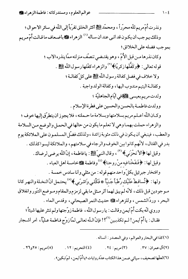نام کتاب : عوالم العلوم و المعارف و الأحوال من الأيات و الأخبار و الأقوال ج11، سيدة النساء فاطمة الزهراء و مستدركاتها نویسنده : الشيخ عبدالله البحراني جلد : 1 صفحه : 104