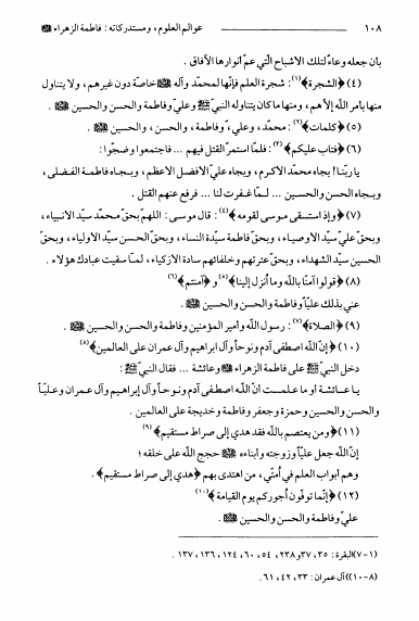 نام کتاب : عوالم العلوم و المعارف و الأحوال من الأيات و الأخبار و الأقوال ج11، سيدة النساء فاطمة الزهراء و مستدركاتها نویسنده : الشيخ عبدالله البحراني جلد : 1 صفحه : 108