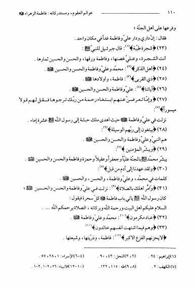نام کتاب : عوالم العلوم و المعارف و الأحوال من الأيات و الأخبار و الأقوال ج11، سيدة النساء فاطمة الزهراء و مستدركاتها نویسنده : الشيخ عبدالله البحراني جلد : 1 صفحه : 110