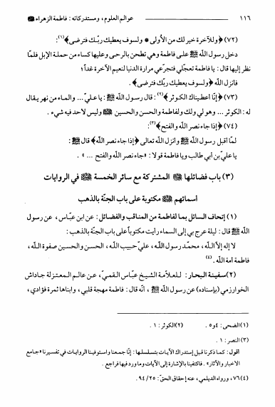 نام کتاب : عوالم العلوم و المعارف و الأحوال من الأيات و الأخبار و الأقوال ج11، سيدة النساء فاطمة الزهراء و مستدركاتها نویسنده : الشيخ عبدالله البحراني جلد : 1 صفحه : 116
