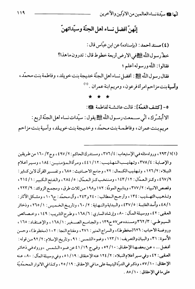 نام کتاب : عوالم العلوم و المعارف و الأحوال من الأيات و الأخبار و الأقوال ج11، سيدة النساء فاطمة الزهراء و مستدركاتها نویسنده : الشيخ عبدالله البحراني جلد : 1 صفحه : 119