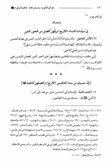نام کتاب : عوالم العلوم و المعارف و الأحوال من الأيات و الأخبار و الأقوال ج11، سيدة النساء فاطمة الزهراء و مستدركاتها نویسنده : الشيخ عبدالله البحراني جلد : 1 صفحه : 120